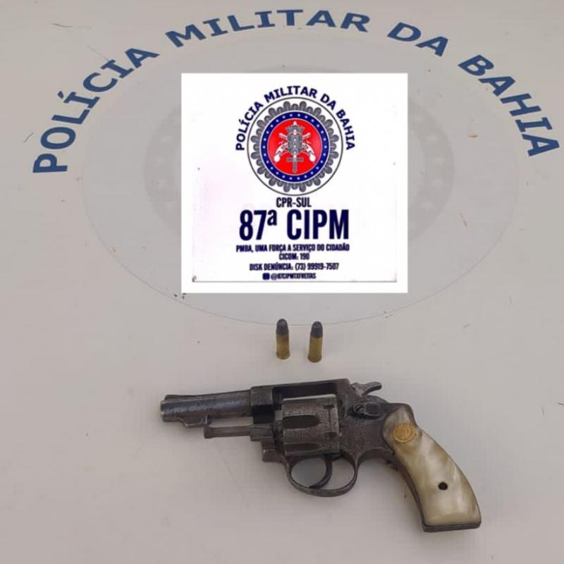 O suspeito estava com um revólver calibre .32, marca Caramuru, com duas munições quando anunciou o roubo. Ele foi dominado por populares, que tomaram a arma dele e o agrediu.