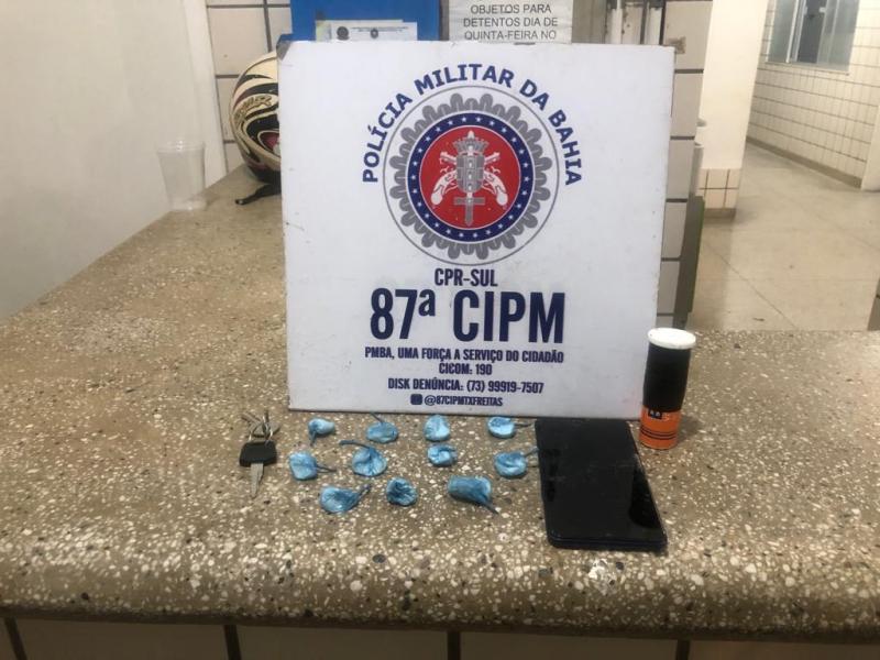 A Polícia Militar prendeu, na noite desta quinta-feira (11), na região central de Teixeira de Freitas, um homem suspeito de fazer entrega de cocaína “em domicílio”.