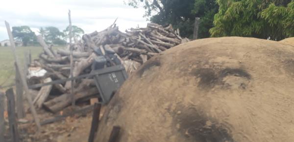 Policiais da 87ª Companhia Independente de Polícia Militar que atuam na Operação Ronda Rural foram acionados para atender a denúncia de funcionamento de um forno clandestino de queima de carvão.