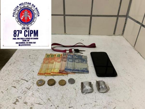 A droga e R$ 80 que estava com o suspeito também foram apresentados na Delegacia de Teixeira de Freitas.