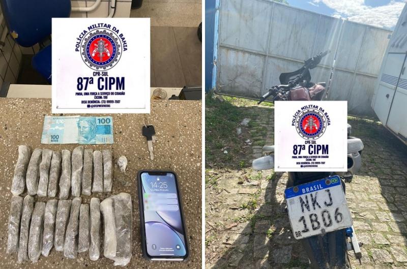 Além da droga foram apreendidos R$ 100 com o suspeito e a motocicleta Honda XRE, cor vinho, placa NKJ 1B06, que estava sendo utilizada na entrega do entorpecente.