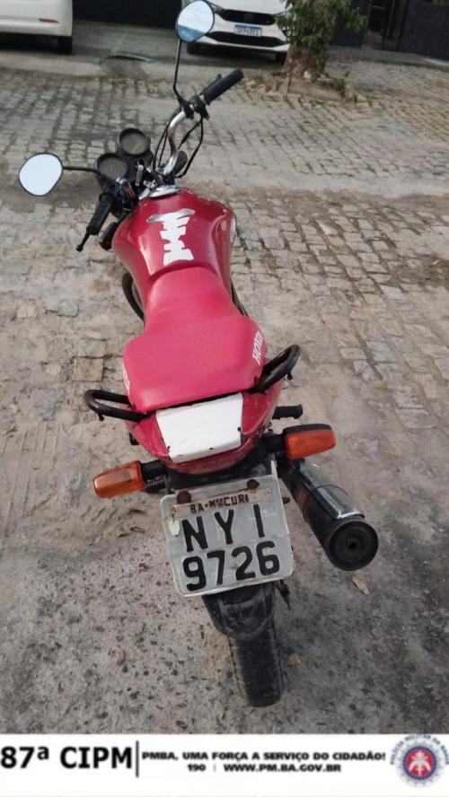 Ainda na noite desta terça, em uma ação na zona rural de Teixeira de Freitas, a Polícia Militar prendeu um homem de 26 anos sob suspeita de receptação de veículo roubado. O homem estava pilotando uma motocicleta Honda CG 150 Titan, de cor preta e placa JRO7878, que tinha restrição.