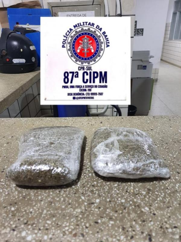 A Polícia Militar prendeu, em flagrante, um homem de 24 anos com quase meio quilo de maconha, na noite desta terça-feira (10), na cidade de Teixeira de Freitas.