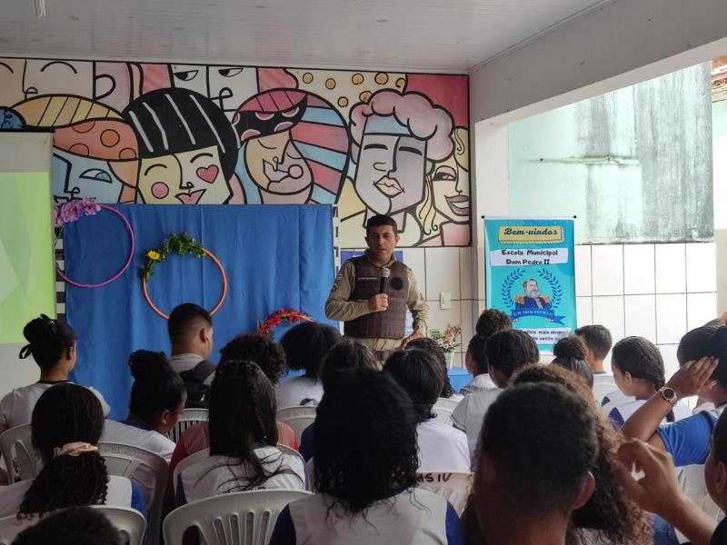 A 87ª Companhia Independente de Polícia Militar ministrou uma palestra, com uma abordagem psicossocial, na Escola Dom Pedro II, no distrito de Duque de Caxias, nesta quinta-feira (6), no período matutino, com o tema “Drogas! É preciso dizer Não”.