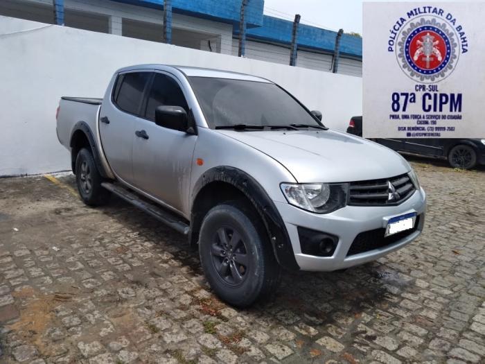 Policiais da 87ª Companhia Independente de Polícia Militar localizaram a L200 Triton, cor prata, nas imediações da cidade.