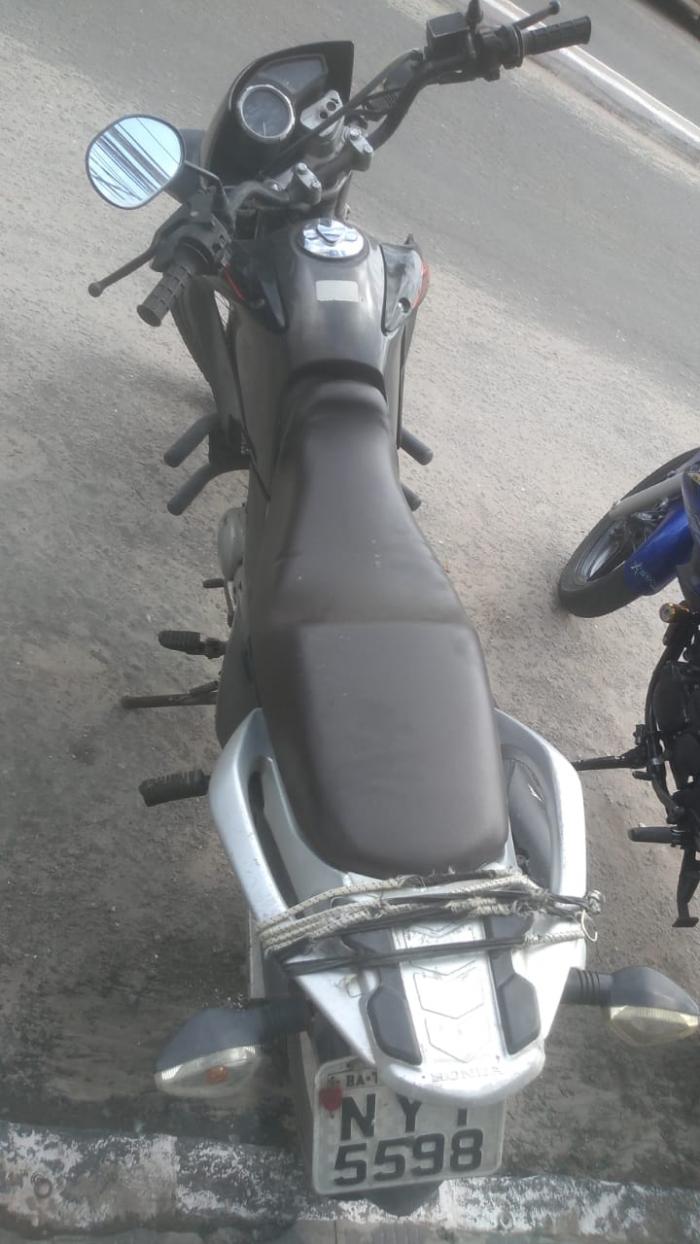 Policiais da 87ª Companhia Independente de Polícia Militar localizaram a Honda Bros, cor preta, placa NYT 5598, na Avenida ACM, na região central da cidade.
