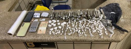 – 130 gramas de cocaína (109 papelotes e 13 pedaços maiores);