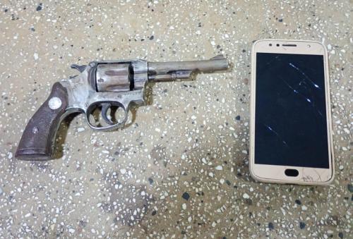 Os policiais encontraram e apreenderam um revólver calibre .32, da marca Taurus. O homem foi preso em flagrante e conduzido à Delegacia Territorial de Teixeira de Freitas, onde foi registrado o Auto de Prisão em Flagrante por porte ilegal de arma de fogo, conforme a Lei nº 10.826/2003.