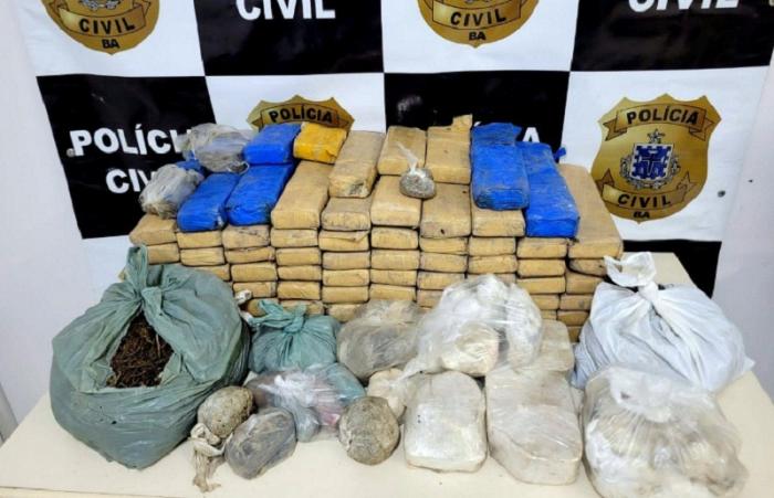 Eunápolis: Policiais Civis apreenderam, na tarde de quarta-feira (11), em Eunápolis, mais de 78 quilos de cocaína, maconha e crack. A droga estava enterrada e dentro de tambores de plástico em uma área de pastagem na região dos bairros Alecrim I e Ariovaldo Reis, na zona Norte da cidade.