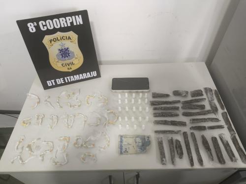 Durante as investigações, representou-se por busca e apreensão e prisão preventiva de todos os envolvidos; e, durante o cumprimento dos mandados na manhã de hoje, no imóvel pertencente a A.L.S.J., foram apreendidos 135 “pedras de crack” (27 gramas), 36 “papelotes de maconha” (166 gramas) e 24 “pinos de cocaína” (28 gramas), oportunidade em que lhe foi dada voz de prisão em flagrante por tráfico de drogas.