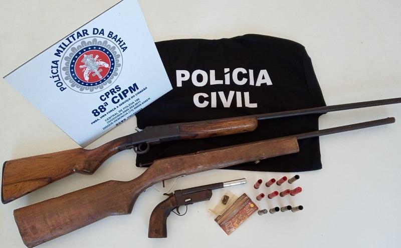 Polícia Civil e Militar cumprem mandado de Busca e Apreensão e apreende armas e munições em Barra de Caravelas