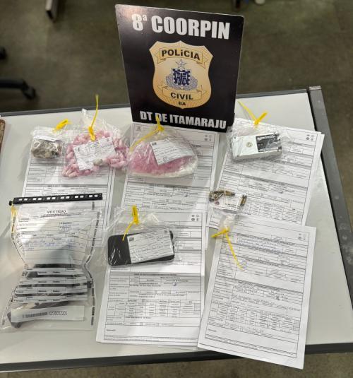 • Outros materiais apreendidos: 14,9 gramas de maconha e 60 pinos de cocaína