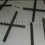 Nas celas 03 e 04 foram serrados partes das grades e foram encontrados dois pedaços de serra.