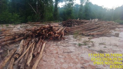 O autuado foi flagrado com o veículo M. Benz, de cor branca, placa: PPY5053 sendo esta bi-trem com placas (HJA1C36 e CUC5F73), carregada com aproximadamente 45 metros cúbicos de madeira de eucalipto de três metros de cumprimento, que fora furtada em uma pilha de madeira pertencente a empresa Suzano.