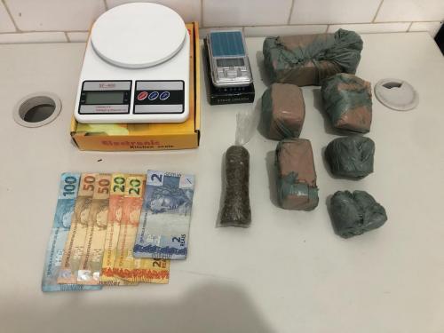 Durante patrulhamento na Rua Dom Manoel, os agentes avistaram um indivíduo com características compatíveis com as descritas nas denúncias. Ele estava na calçada de sua residência, montado em uma bicicleta. No momento da abordagem, os policiais encontraram, na cesta da bicicleta, uma sacola contendo duas balanças de precisão, sete pacotes de maconha, totalizando aproximadamente 716 gramas, e a quantia de R$ 242,00 em espécie.