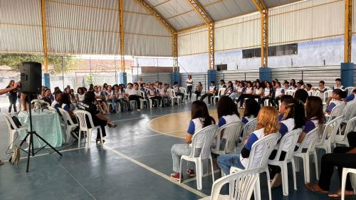 Também foram discutidos temas sensíveis, como feminicídio e estupro de vulnerável, com o objetivo de conscientizar os estudantes sobre a gravidade dessas práticas e seus impactos na sociedade.