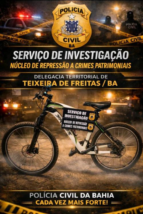 A Polícia Civil da Bahia recuperou uma bicicleta furtada no estacionamento do Supermercado Faé, em Teixeira de Freitas. A ação foi realizada por uma equipe do Núcleo de Inteligência da 1ª Delegacia Territorial do município.