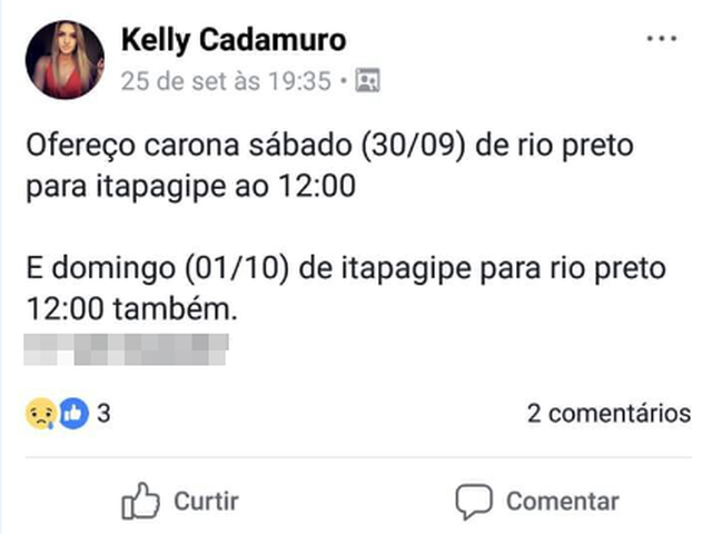 A radiologista Kelly Cadamuro foi dada como desaparecida depois que saiu de São José do Rio Preto (SP) com destino a Itapagipe (MG) para encontrar com o namorado, que chegou a alertá-la por mensagem para que ela tivesse cuidado na viagem.