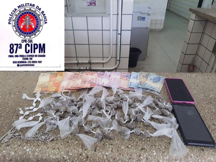 Após uma diligência minuciosa, os policiais confirmaram a veracidade da denúncia. Na revista pessoal, foram encontradas em posse dos suspeitos uma quantidade expressiva de entorpecentes prontos para a venda, bem como uma quantia em dinheiro em espécie. O material apreendido incluiu 88 buchas de maconha, 12 papelotes de cocaína e 2 pedras de crack, além de R$ 210.