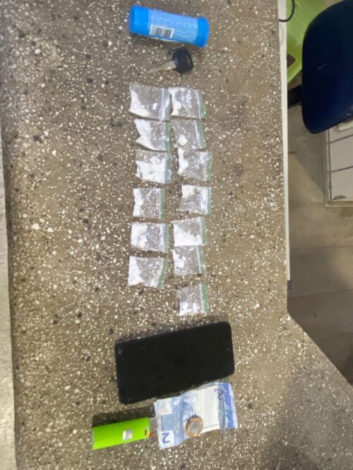Durante a busca pessoal, os policiais encontraram com o jovem um frasco contendo cocaína. Ao todo, foram apreendidos 13 papelotes da droga, somando aproximadamente 13 gramas.
