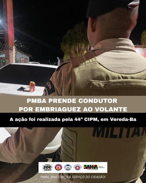 Na noite deste sábado (5), por volta das 23h, a Polícia Militar prendeu um motorista por embriaguez ao volante no trevo de acesso ao município de Vereda, no extremo sul da Bahia. A ação foi realizada por equipes da 44ª Companhia Independente da Polícia Militar (CIPM) durante patrulhamento ostensivo na região.