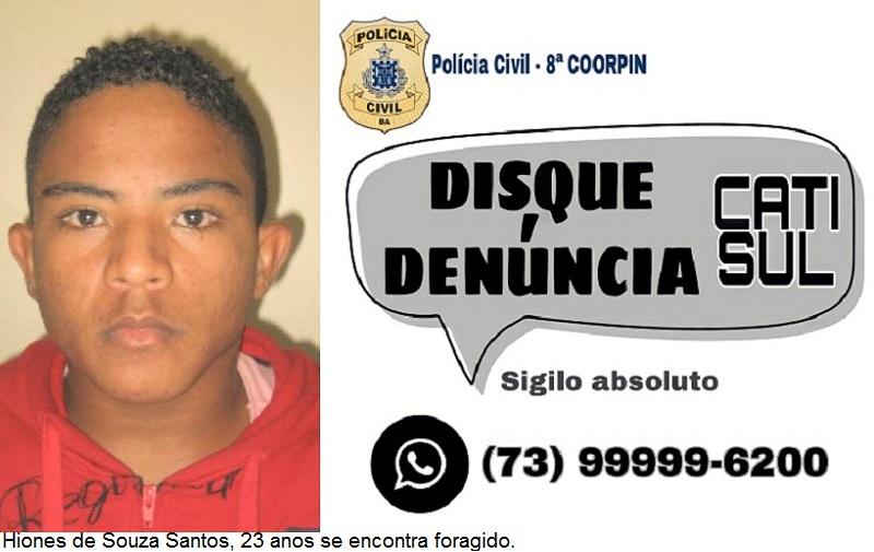 Hiones se encontra foragido, e a Polícia procura pelo acusado, que tem mandado de prisão. A Polícia pede que a população denuncie através do número (73) 99999-6200, garantido o sigilo da fonte e das informações.