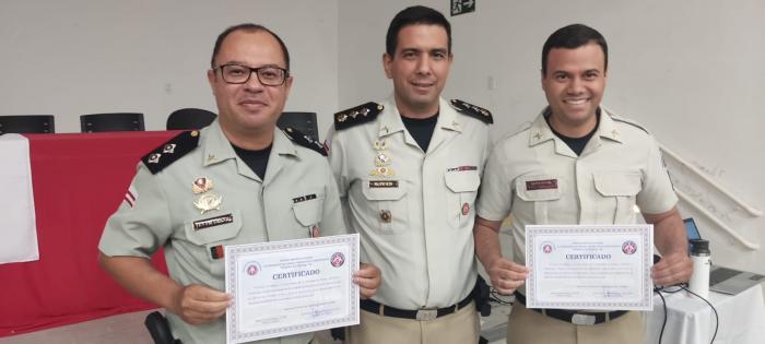 Na tarde desta quinta-feira (25), o tenente Urânio Santos e o soldado Erlon Novais Farias, da 87ª Companhia Independente de Polícia Militar (CIPM), receberam certificados de conclusão do Curso de Gestão em Projetos da Polícia Militar da Bahia. Os dois policiais militares, juntamente com os demais que fizeram o curso, apresentaram um projeto inovador para a construção de um Centro Terapêutico destinado aos policiais militares na cidade de Alcobaça.