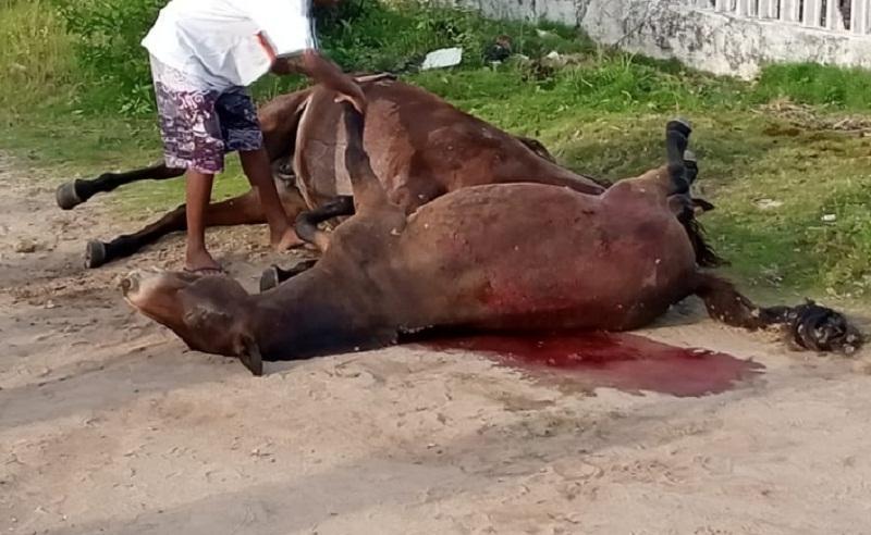 Nova Viçosa: Nossa equipe de reportagem recebeu nesta quarta-feira, 11 de maio, informações sobre uma investigação da Polícia Civil de Nova Viçosa acerca de um crime ambiental, um crime que está chocando a população pela crueldade. Trata-se da execução sumária de animais quadrúpedes (éguas, cavalos, jegues), em plena via pública da cidade, inclusive dois dos animais, sendo éguas, estavam prenhas.