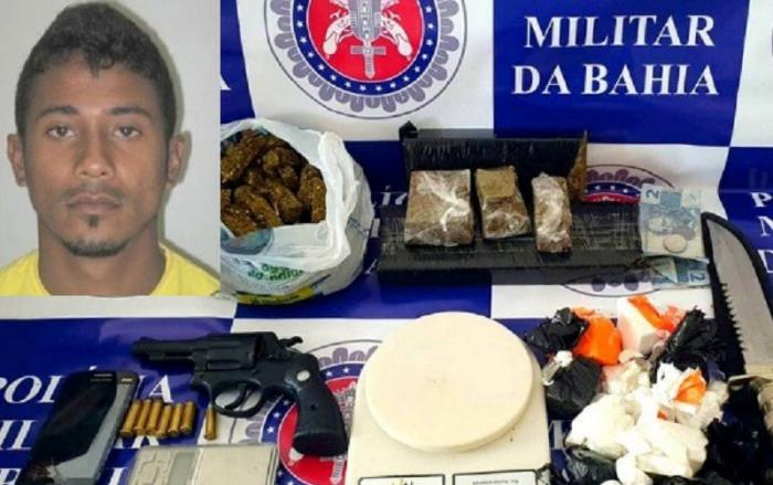 Na residência foram apreendidos cerca de 3 kg de drogas, entre cocaína e maconha, e 2 balanças de precisão. Um revólver calibre .38 também foi encontrado no imóvel.