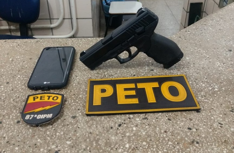 No final da tarde deste sábado, 02 de fevereiro, policiais do PETO da 87ª CIPM foram informados sobre um assalto ocorrido na rua Jornalista Ivan Rocha, no bairro Redenção, onde dois suspeitos teriam subtraído um aparelho celular, após um deles apontar uma arma de fogo para a vítima e ter anunciado o assalto.