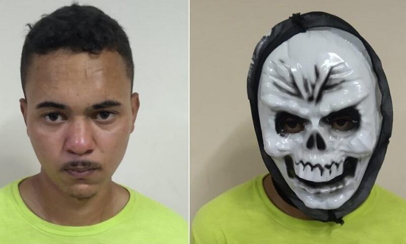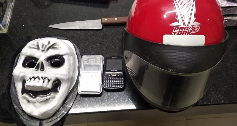 Durante o assalto, o suspeito usou uma máscara, que foi apreendida pelos policiais da Delegacia de Repressão a Furtos e Roubos. Na fuga, após abandonar o carro em que estava durante a perseguição da PRF, ele acabou se machucando, por isso está com escoriações.