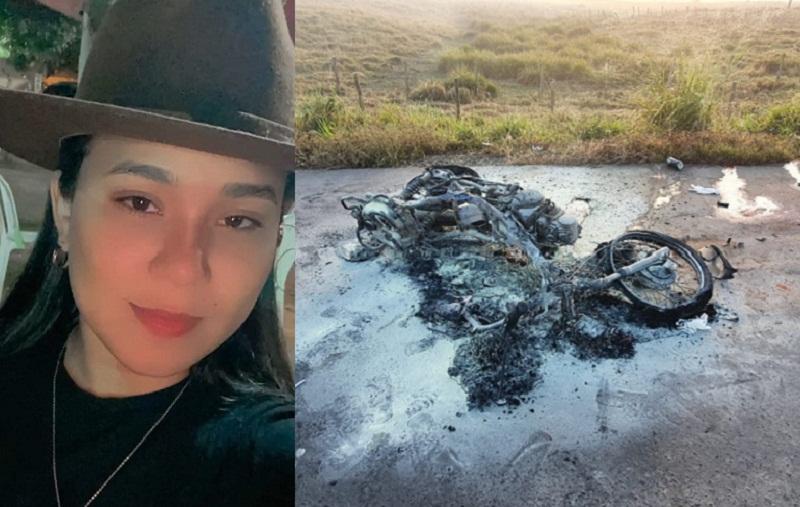 Policiais militares foram acionados para registrar a ocorrência e ao chegarem no local, encontram a motocicleta ainda em chamas e a mulher próxima do veículo, com diversas escoriações.