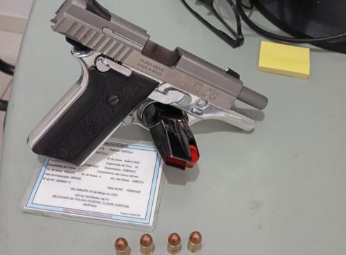 Os policiais foram acionados para uma ocorrência de descumprimento de medida protetiva e encontraram uma pistola calibre .380, marca Taurus, com carregador e quatro munições intactas no interior de um veículo. O suspeito, Ademir Pavão, foi detido e conduzido à Delegacia da Polícia Civil de Nova Viçosa.