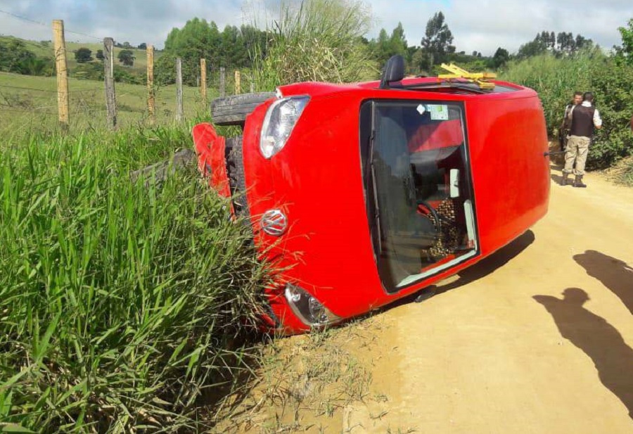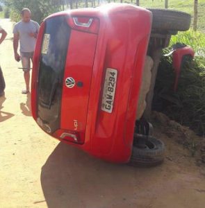 Os rapazes seguiram a viagem e perderam o controle do carro logo à frente – cerca de 50 metros depois – após colidir em um barranco.