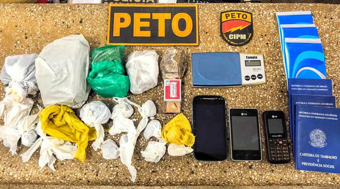 Com elas foram encontrados aproximadamente 762 gramas de maconha, que estavam em forma de pequenos tabletes e porções, além de 15 gramas de crack, uma balança digital e três celulares.