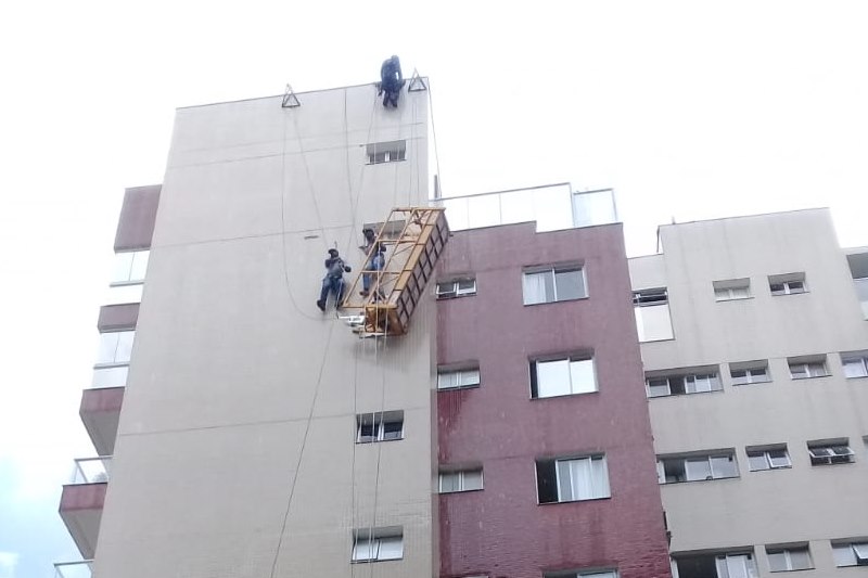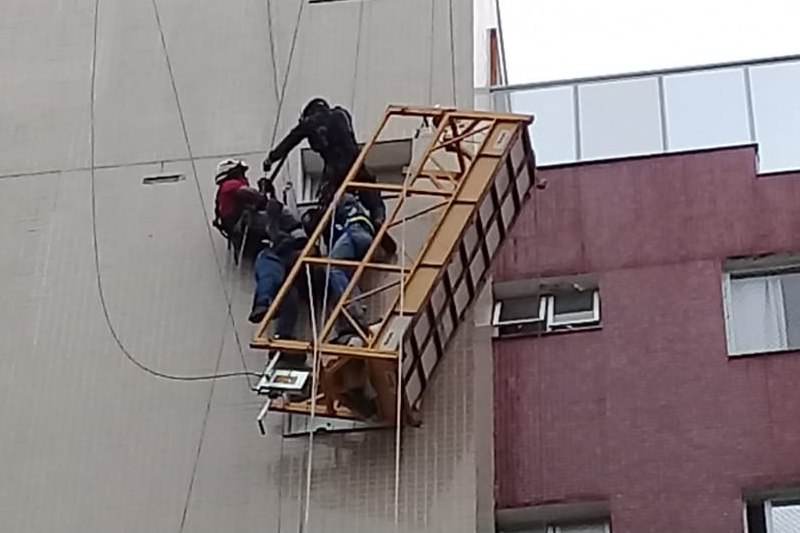 Dois trabalhadores foram resgatados por uma equipe do 18º Grupamento de Bombeiros Militar (GBM) nesta manhã de terça-feira, 25, após ficarem presos em uma plataforma suspensa do lado de fora de um prédio em Teixeira de Freitas.