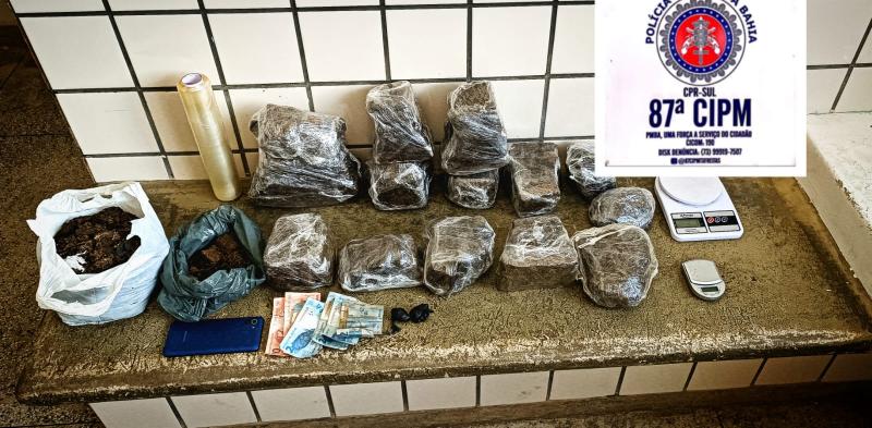 A Polícia Militar prendeu um homem nesta segunda-feira (30), por volta das 10h30, com 10 quilos e 389 gramas de maconha, na cidade de Teixeira de Freitas.