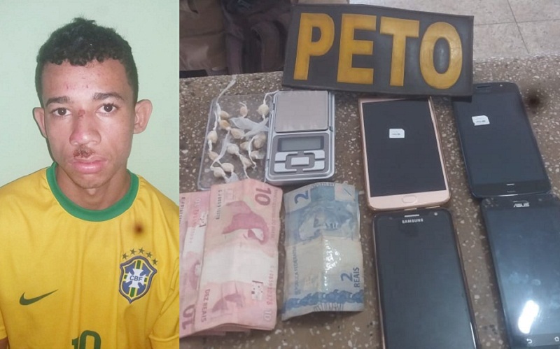 Os militares, então, montaram cerco no imóvel, apreenderam a moto e durante buscas encontraram 03 indivíduos: Klaiver Mascena Oliveira, 19 anos de idade, que reside na Rua Amaralina, no Bairro Liberdade II, e os outros 02 são menores. Dentro do imóvel também foi encontrado: R$ 80,00 (oitenta reais), 14 pedras de crack, 04 aparelhos celulares de diversas marcas (02 Motorola, 01 Azus e 01 Samsung J5).