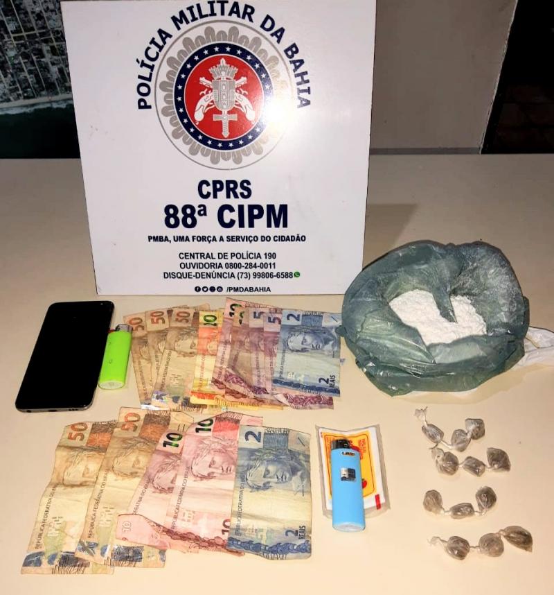 Um jovem foi preso pela PM e um adolescente conduzido com drogas na cidade do Prado