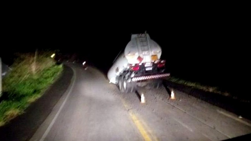 Conforme a Polícia Rodoviária Federal (PRF), a empresa responsável pelo combustível acionou um guindaste para retirar o veículo do local.