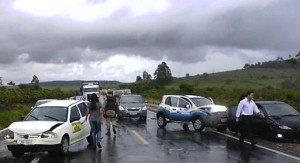 Segundo um motorista que trafegava pela rodovia, chovia muito na hora do acidente, um carro oficial do governo, modelo Parati placa policial JHK 0955, acabou batendo na traseira da viatura provocando o acidente que envolveu mais cinco carros, totalizando um engavetamento de sete veículos.