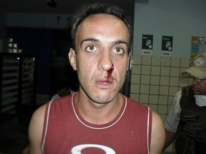 Segundo o comerciante Arlindo tudo aconteceu da seguinte forma, ele estava em seu comercio, quando surgiu Eduardo com um monte de pedras nas mãos para lhe atirar, dizendo que ele estava ficando com a mulher dele, para se defender ele teria pegado um tamborete de madeira, Eduardo tentou tomar o tamborete, e quando mediam forças, o tamborete acabou machucando o nariz de Eduardo.