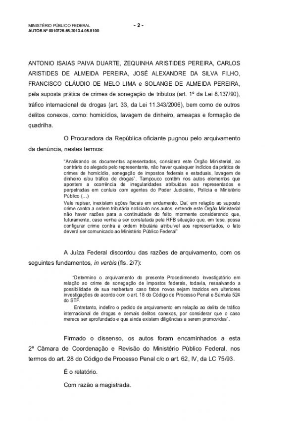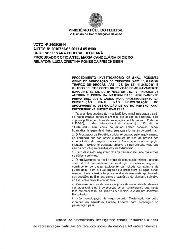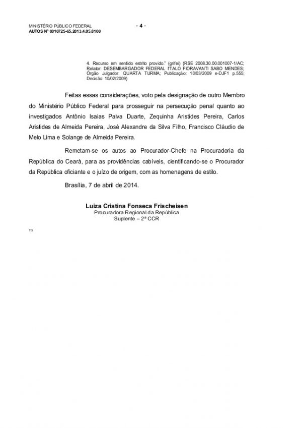 “O arquivamento do presente inquérito é prematuro, com a devida vênia à Procuradora da República oficiante”, diz um trecho do documento.