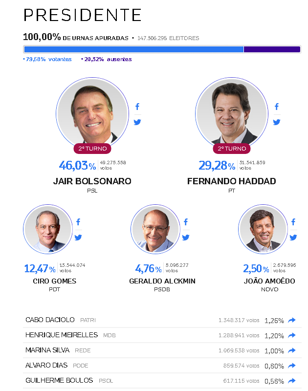 - JAIR BOLSONARO PSL 2T43,48%