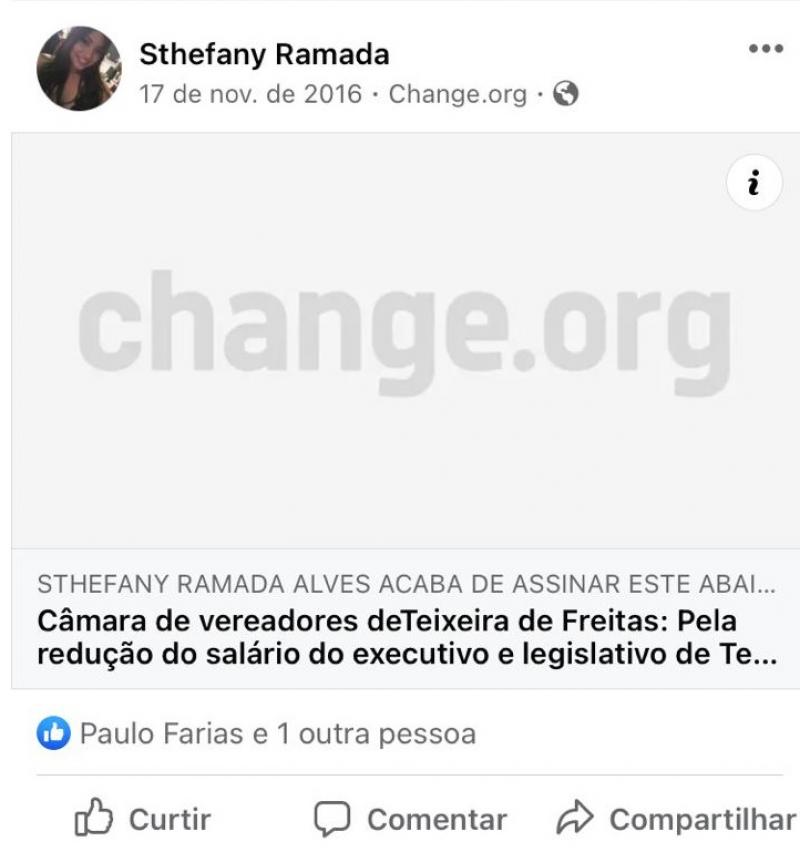Curiosamente, nas redes sociais, Sthefany Ramada já foi uma das pessoas que defendeu a redução dos salário de prefeito, vice-prefeito, vereadores e secretários. Parece controverso ocupar um cargo público notoriamente vedado pela Lei.