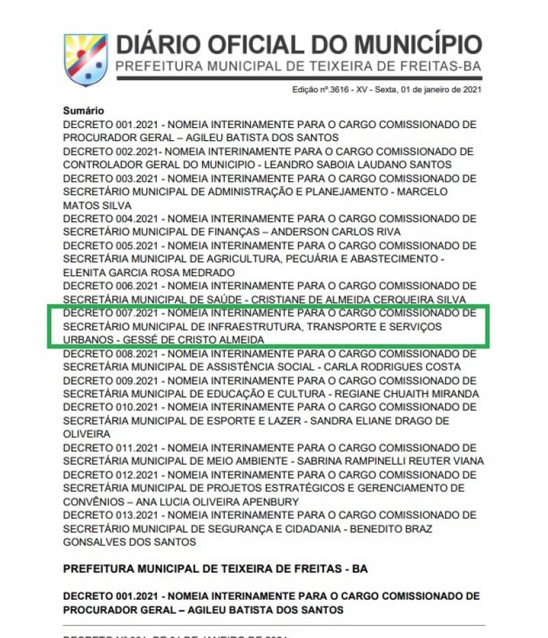 A prática do nepotismo de forma direta ou indireta, diuturnamente combatida pelos “arautos da moralidade administrativa e politica” de Teixeira de Freiras, pelo que tudo indica encontrou brecha na nova gestão do município. Bom, pelo menos é o que podemos constatar na nomeação de Sthefany Ramada para o cargo público de chefe de gabinete na Secretaria Municipal de Infraestrutura.