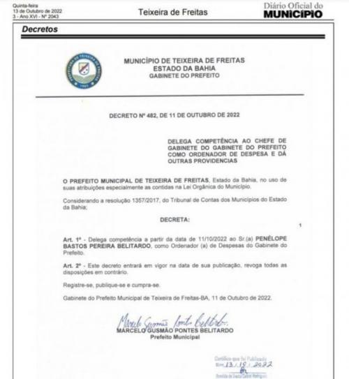 O prefeito de Teixeira de Freitas Marcelo Belitardo pode renunciar a qualquer momento, inclusive uma renúncia branca já teria ocorrido com a nomeação de sua esposa Penélope Belitardo como chefe de gabinete.