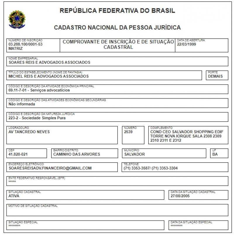 O que chama atenção neste contrato com dispensa de licitação, é em relação ao proprietário da empresa. Segundo o site da Receita Federal, a empresa Soares Reis, possui o nome fantasia de MICHEL REIS E ADVOGADOS ASSOCIADOS.