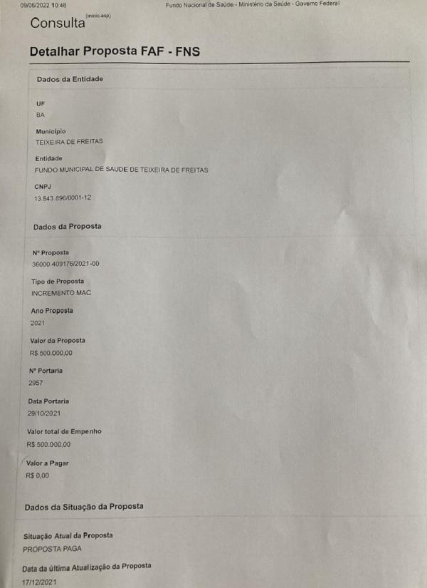 E é aí que surgiu a denúncia do prefeito de Caravelas, Silvio Ramalho, e da sua Secretária de Saúde, Marina Ramalho. Segundo o prefeito Silvio Ramalho, há uma grande demanda reprimida na área de Saúde da região, e ele, frente ao Consórcio conseguiu esse Emenda Parlamentar com o senador Ângelo Coronel. “Conseguimos esse recurso para atender e suprimir toda a demanda da Policlínica para não sobrecarregar os municípios, não onerar os municípios, com 07 meses que o dinheiro está na conta do município de Teixeira de Freitas e até hoje não foi repassado à Policlínica”, explicou.