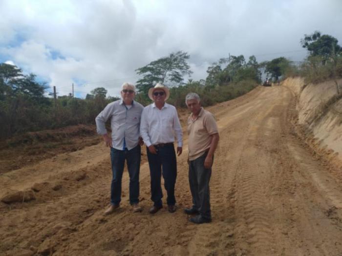 Prefeito Silvio Ramalho e Vereador Gilmar Souza acompanham de perto as obras de recuperação de estradas em Nova Tribuna e Rancho Alegre no interior de Caravelas.